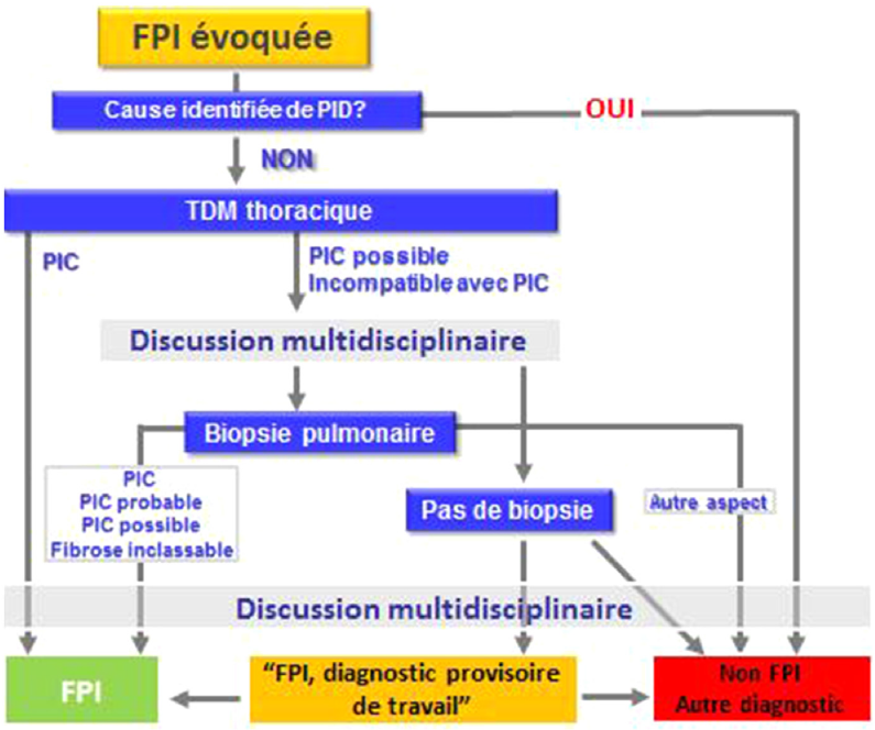 - Essentiellement étiologique : à coté des PID de cause connue et de cause inconnue mais survenant dans un contexte particulier, il a été individualisé le groupe des PID idiopathiques qui fait l'objet d'un consensus ATS/ERS