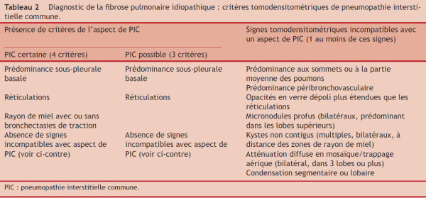 - Nécessaire au diagnostic de FPI si TDM atypique (PIC possible ou atypique)